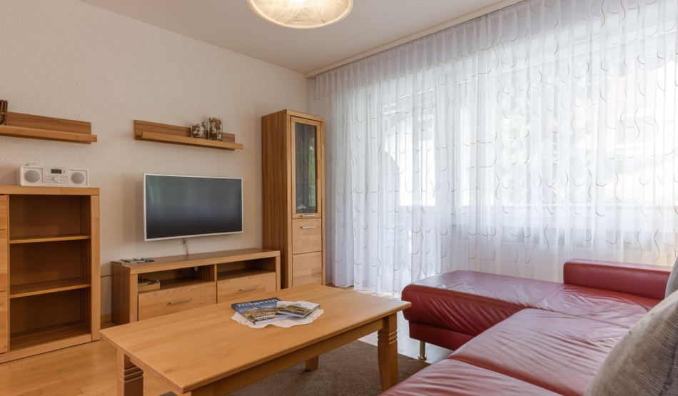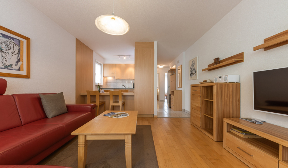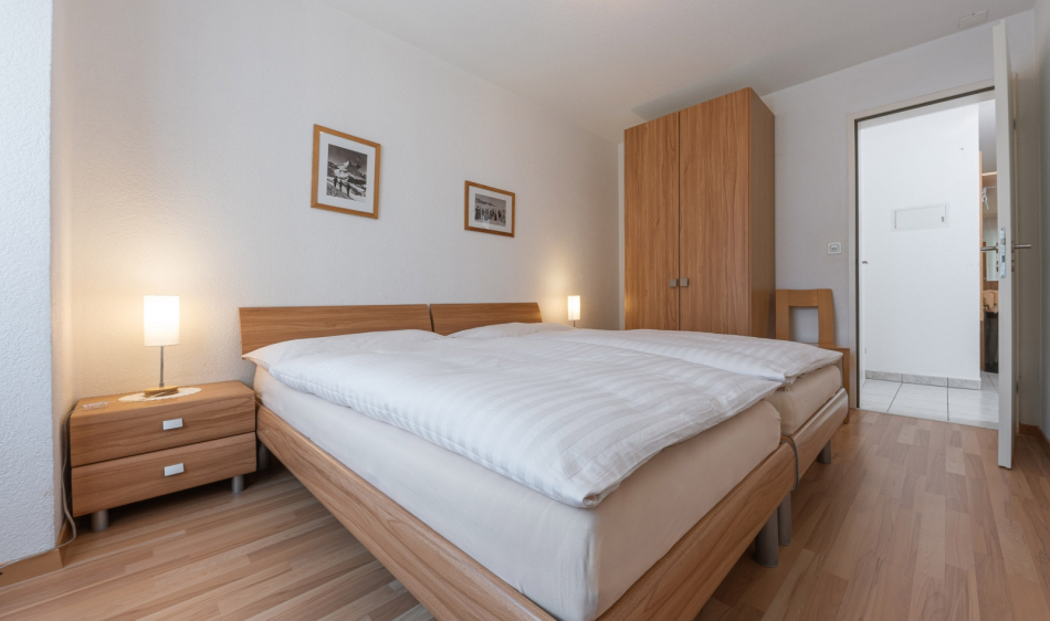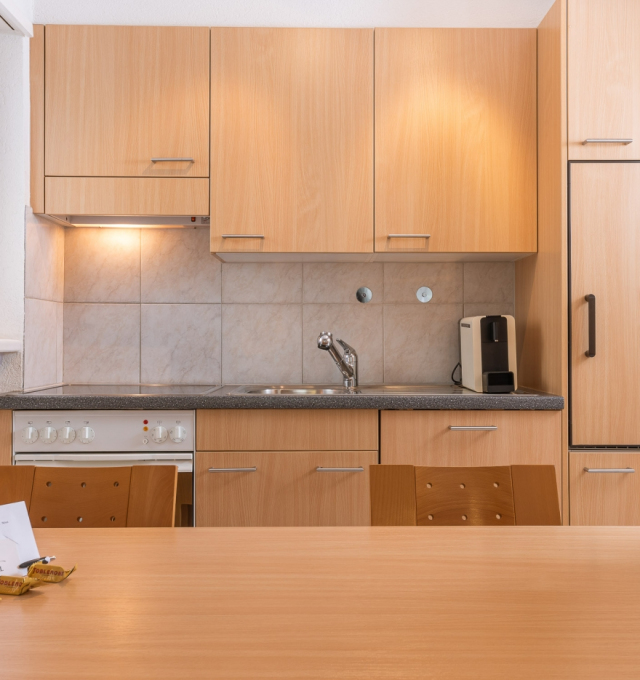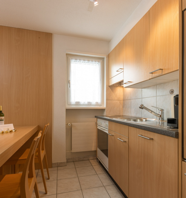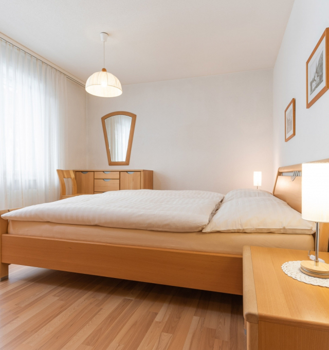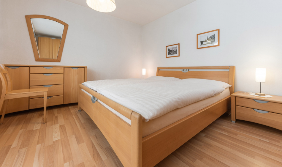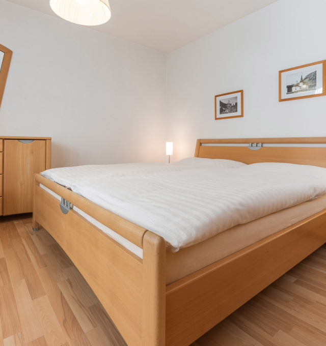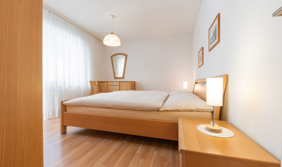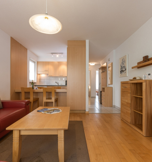 Bright, furnished livingroom with a sofa and coffee table. Cable-TV, radio and free WLAN. Two separate double-bedrooms. Fully equipped kitchen with dishwasher, ceramic hob, oven, fridge, fondue and raclette accessories as well as an espresso machine. Dining table seating up to 6 persons. Newly renovated bathroom with walk-in shower, toilet, hairdryer.