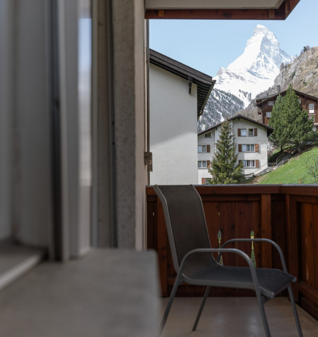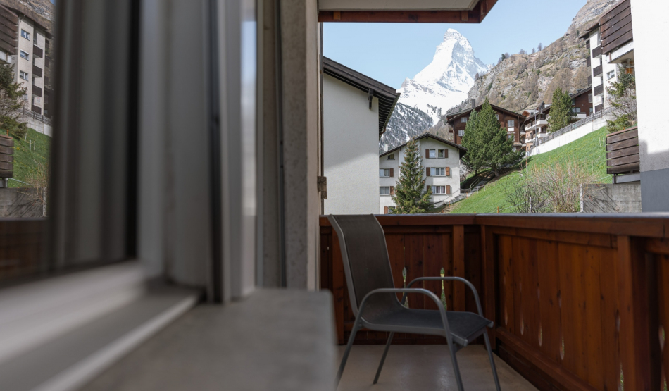 3-Room Apartment furnished (69 m2) on the 2nd floor with south- and westfacing balconies, with a direct view to the Matterhorn from the west balcony.