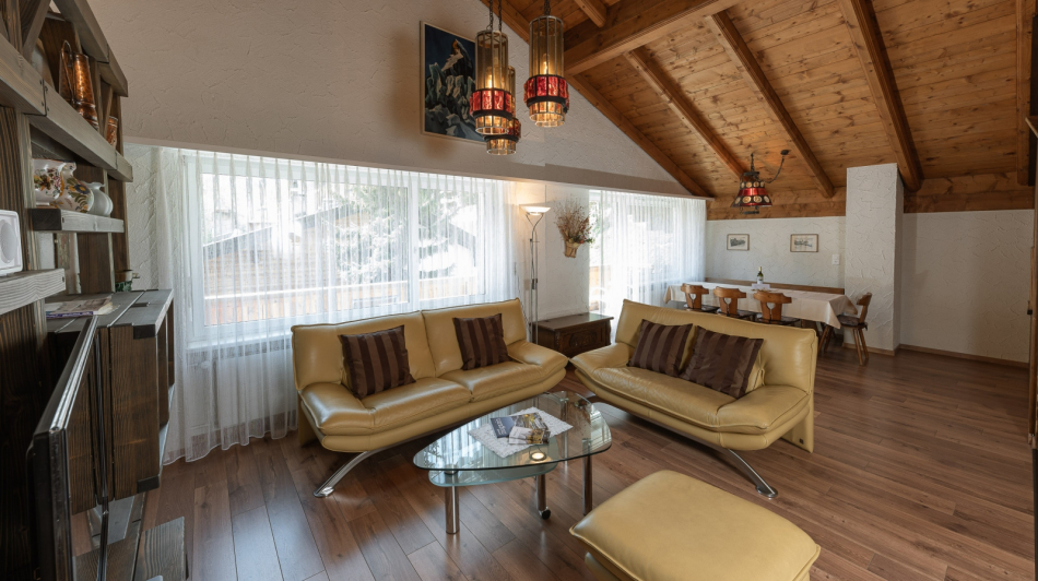 Attic Apartment (110 m2) furnished, with a large South-facing balcony and a direct view to the Matterhorn