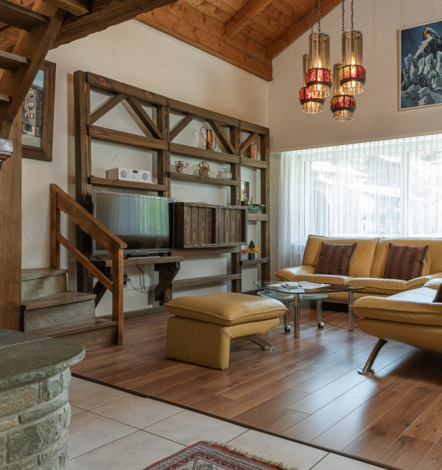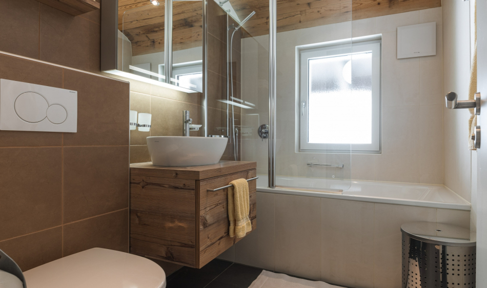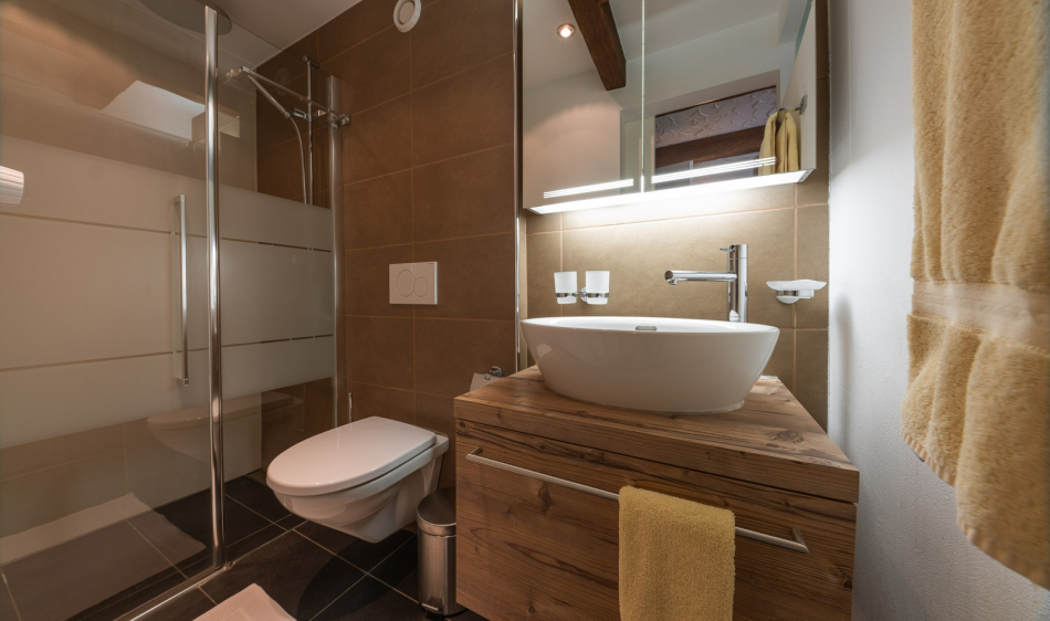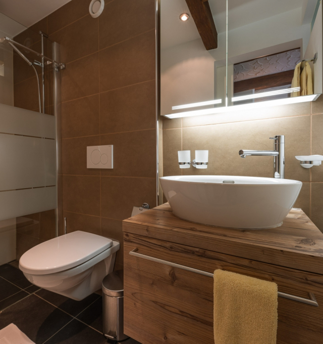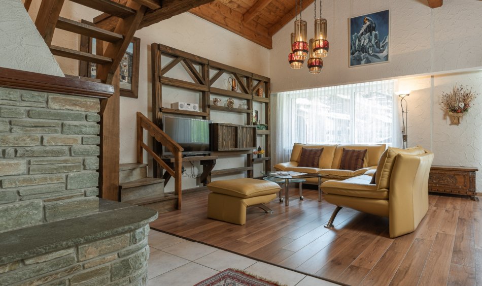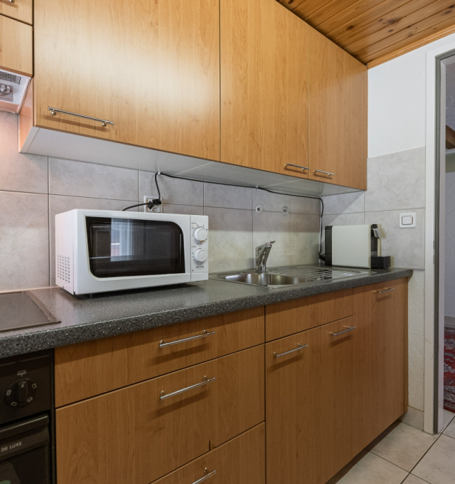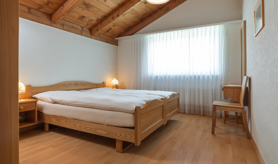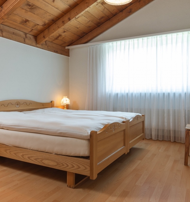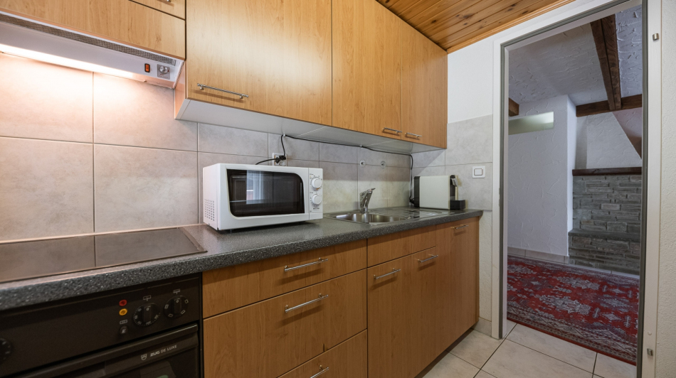 Rustic furnished comfortable, large living and dining room with a chimney. Two-seater – and 3-seater leather sofas with stool and coffee table. Cable-TV, radio and free WLAN. Open gallery with single bed (1.20m x 2.00m). Two separate double bedrooms. Fully equipped kitchen with dishwasher, ceramic hob, oven, fridge, microwave, fondue and raclette accessories, toaster as well as an espresso machine. Dining table seating up to 8 persons. Newly renovated bathroom with bath tub, toilet, hairdryer. Separate bathroom with walk-in shower, toilet.